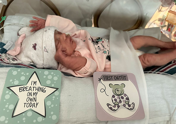 The next day, Gianna felt a wet sensation, indicating a rupture in the membrane surrounding her baby. “After 48 hours of receiving steroids, the nurses stopped my IVs and removed my epidural,” said Gianna. “I had progressed to six centimeters and was in active labor.”